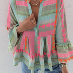 The Sirenia - Boho Printed Top is your burst of color and charm for days that call for creativity and comfort. With its bold geometric print and breezy silhouette, this piece captures the essence of effortless bohemian elegance.