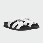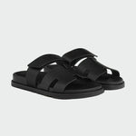 Rinnova il tuo stile quotidiano con questi sandali neri che combinano comfort ed eleganza. Il loro design moderno con cinturino largo e il caratteristico motivo conferiscono un'estetica minimalista, mentre la suola piatta offre stabilità e comfort ad ogni passo. Scelta ideale per ogni look casual.