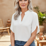 ✔ Chic V-Neckline: Featuring a stylish split V-neck design, this blouse adds a modern twist to a timeless classic, offering a flattering silhouette.