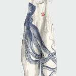La tuta Polpo in Canvas combina arte e stile in un pezzo straordinario. Su uno sfondo bianco naturale, il design blu in stile giapponese del polpo si estende con dettagli, creando un'atmosfera marina che cattura gli sguardi.