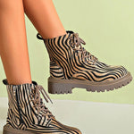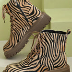 The Vera - Urban Safari Boots are the perfect blend of fierce attitude and practical comfort. Featuring a striking zebra pattern, these boots make a fearless fashion statement while providing durability and support for all your urban adventures.