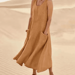 Comfortable and chic, the Zafrina Dress is designed to offer both freedom and refinement. This sleeveless, loose-fitting dress is perfect for any occasion, whether you're shopping or relaxing on the beach. Add versatile flair to your look and make a lasting impression wherever you go.