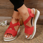 The Zaria - Effortless Charm Sandals are the perfect balance of comfort and casual elegance. With their crisscross strap design and supportive wedge sole, these sandals are made to keep you stylish and comfortable from morning strolls to evening gatherings.
