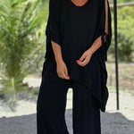 The Zelora - Relaxed Style Set brings breezy sophistication to your everyday wardrobe. This two-piece ensemble offers a flowing silhouette that radiates calm confidence and delivers unmatched comfort whether you're at home, on vacation, or stepping out for errands.